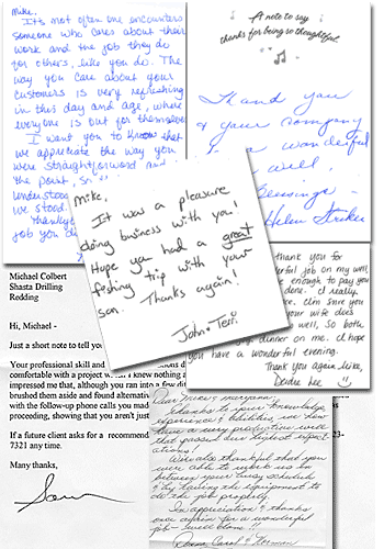 Just a short note to tell you what a pleasure it was doing business with you and Shasta Drilling.